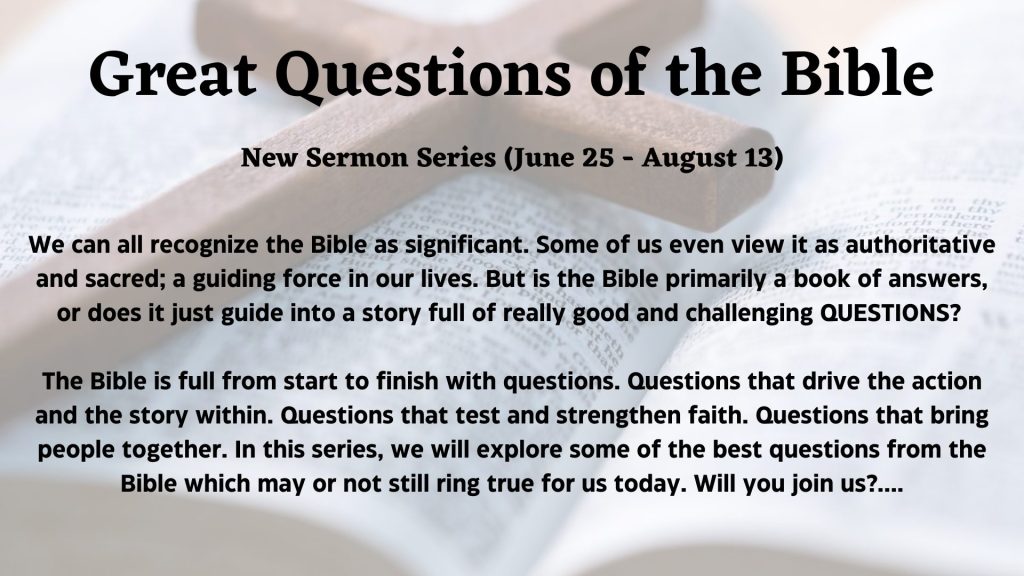 In this second week of our summer sermon series (Great Questions of the Bible), we turn from a question that God asks us to a question that we ask God. It is a pivotal question that every one of us faces multiple times on our journey, particularly in times of struggle. IS THE LORD AMONG US OR NOT?