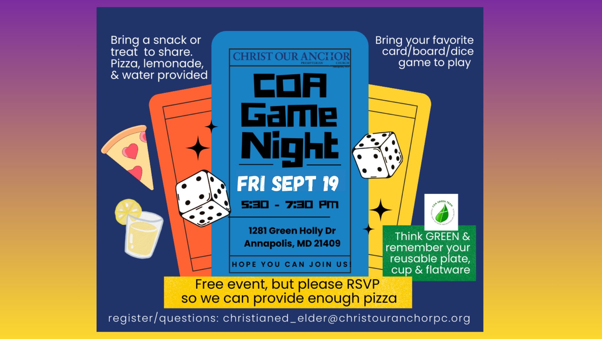 To be added to our email list, just email coa_office@christouranchorpc.org with your request.